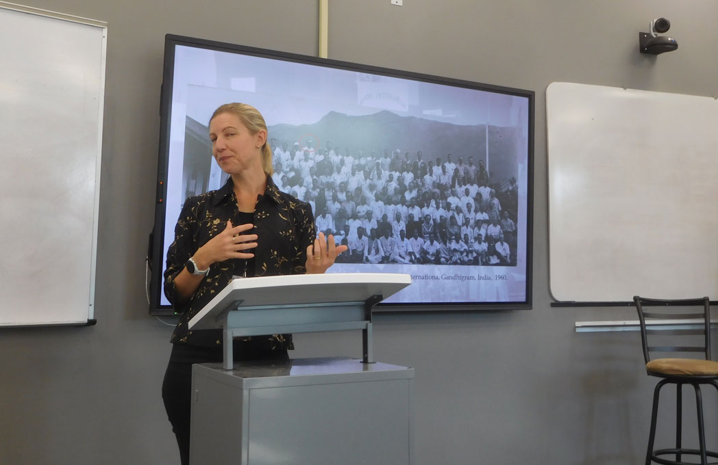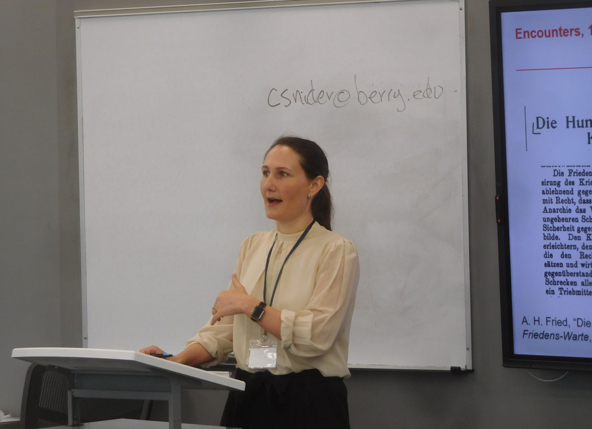 Berry College president Dr. Sandeep Mazumder and Keynote Speaker Dr. Mary Dudziak, Asa Griggs Candler Professor of Law, Emory University, “War and Peace in Time and Space” (photos by PHS president Gail M. Presbey)