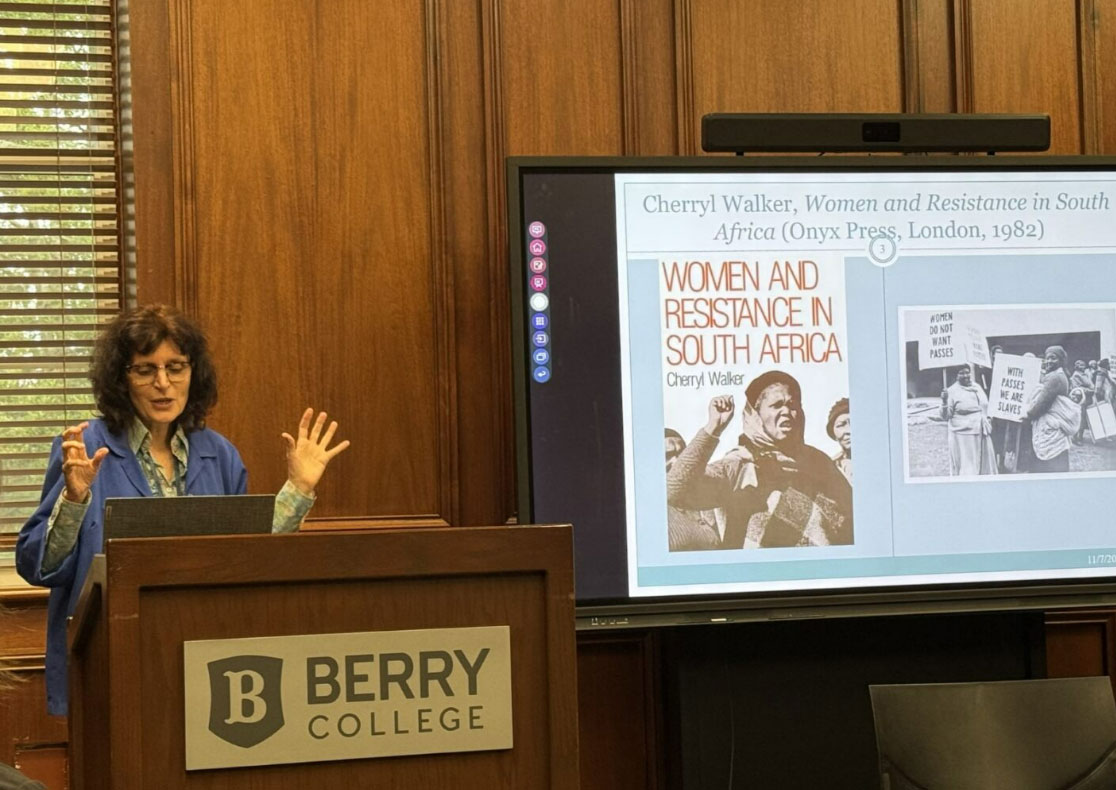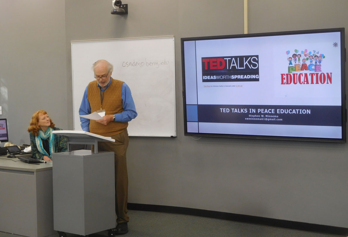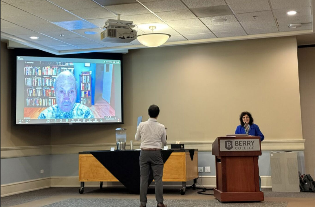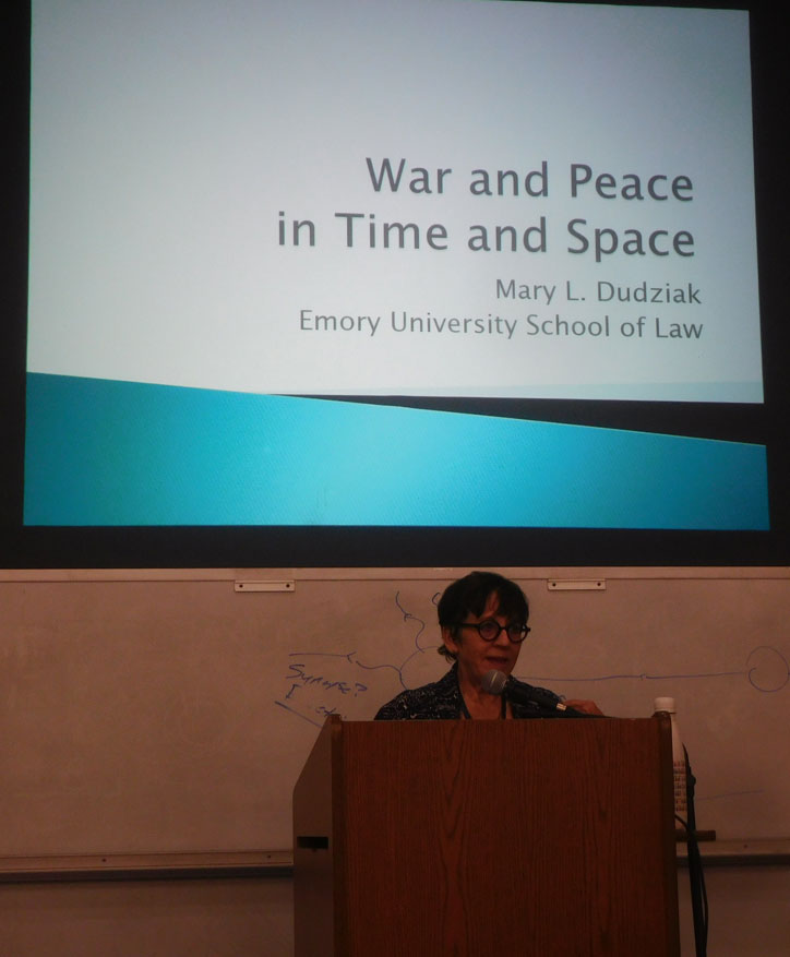 Berry College president Dr. Sandeep Mazumder and Keynote Speaker Dr. Mary Dudziak, Asa Griggs Candler Professor of Law, Emory University, “War and Peace in Time and Space” (photos by PHS president Gail M. Presbey)